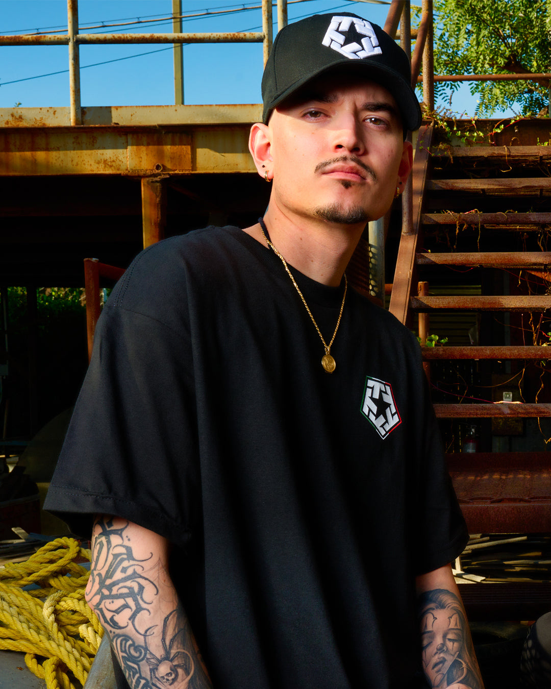 100% cotton Mens tee with "Charra" print By Adrian Delgado.