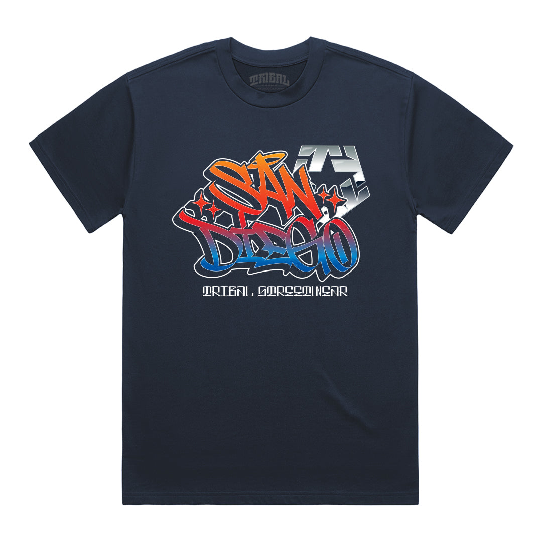 100% cotton Mens tee with "San Diego Tag" print By Tribal Streetwear.